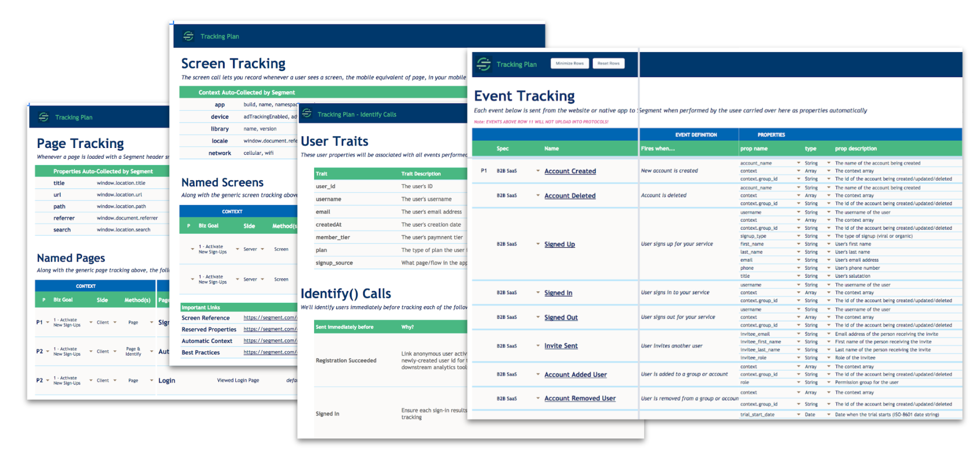 If you’re having trouble starting out, we recommend that you look at our free Tracking Plan spreadsheet template for inspiration. (We’ll talk more about Tracking Plans below.)