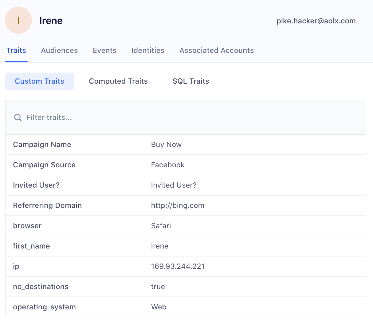 email,first_name,last_name) as custom traits. You can then view them in the profile explorer, and use them in your audiences, computed traits and SQL traits.