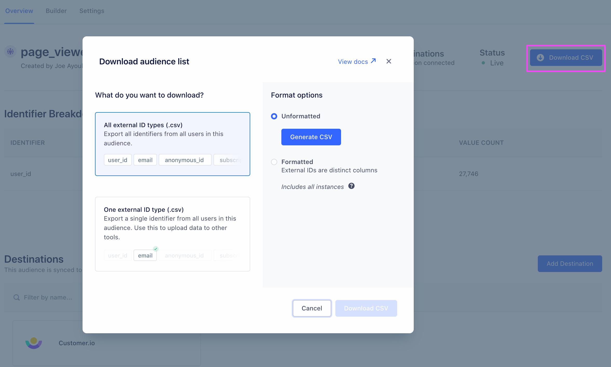 Downloading your Audience as a CSV