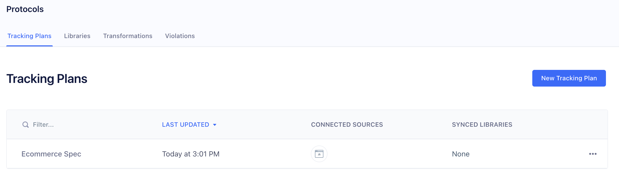 If your tracking plan is in a spreadsheet, use the Google Sheets Uploader to import it to Protocols.