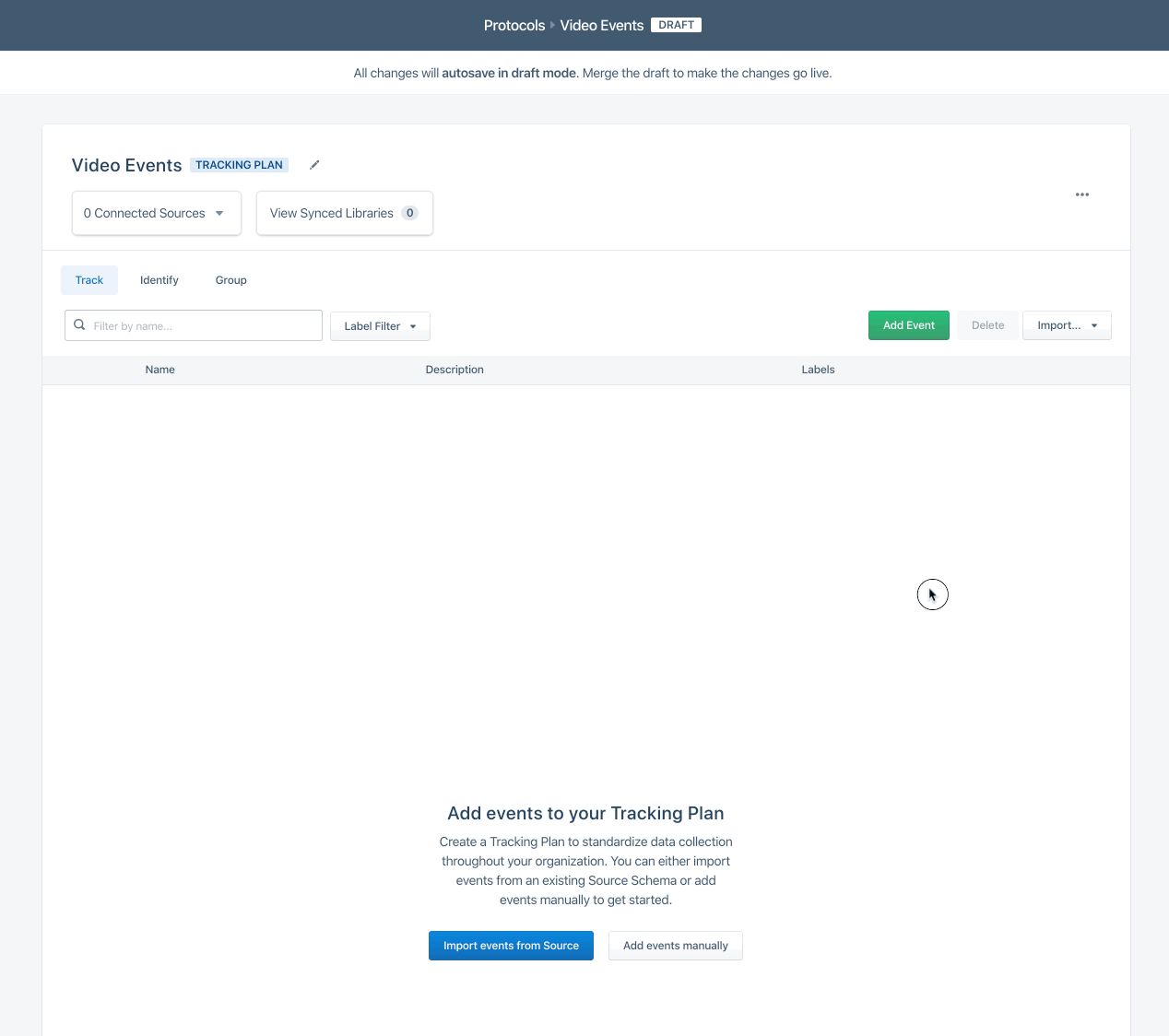 Tracking Plan Libraries make it easy to scale Tracking Plan creation within your workspace. You can create libraries for track events or track event properties. Editing Tracking Plan Libraries is identical to editing Tracking Plans.